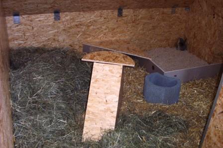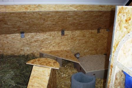 Die Gehege bauten wir dann 2004: In dem größeren Gehege leben Bonnie, Dawn, Maxi und zur Zeit die Jungen Snowflake und Starbuck.
